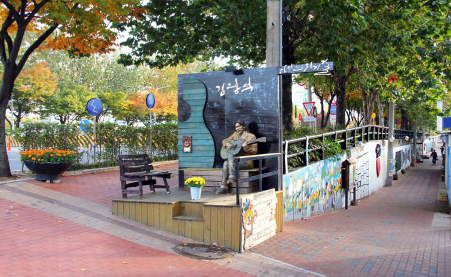 - 김광석의 실물 크기 동상을 끌어안고 찍으면 대표적인 인증샷 완성!